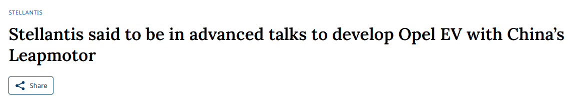 猫头鹰车志(ID:owlauto)讯,近日,据媒体报道,三位知情人士透露,全球第四大汽车制造商STELLANTIS集团正与中国新能源车企零跑汽车进行深入谈判,计划联合为欧宝(Opel)品牌开发一款纯电动SUV车型,项目内部代号为“O3U”。