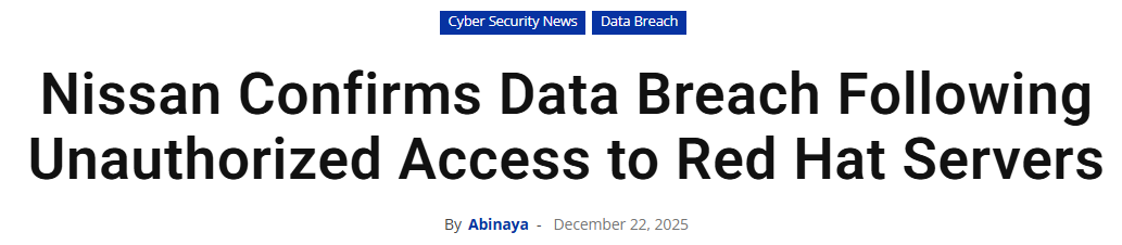 猫头鹰车志讯(ID:owlauto),近日,日产汽车公司正式确认,因负责开发客户管理系统的第三方承包商管理的红帽(Red Hat)服务器遭到未授权访问,发生重大数据泄露事件,此次泄露波及日产福冈销售公司约2.1万名客户的个人信息。