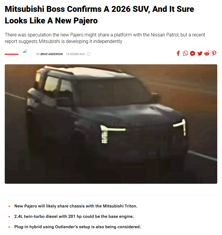 停产5年再续传奇!三菱汽车暗示帕杰罗“复活”
