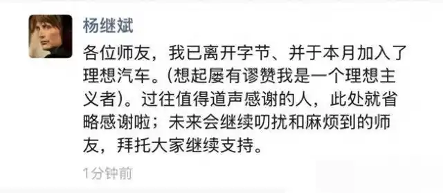 字节前公关总监杨继斌跨界加盟理想汽车