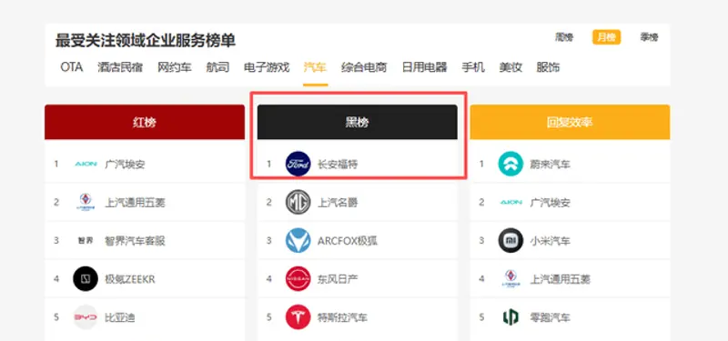 值得一提的是,此前,长安福特锐界L车型也因搭载同款820A芯片,存在车机卡顿、功能缺失等问题而被车主们集体维权。截至2025年11月28日,全国20余省市超200名锐界L车主联合发布维权声明,相关投诉在各大平台居高不下。目前,长安福特在黑猫投诉平台汽车领域企业服务榜单黑榜中登顶周榜、月榜双第一,在车质网发布的2025年11月国内汽车投诉前30排行榜中,蒙迪欧位列第三,投诉焦点集中在车机系统问题。