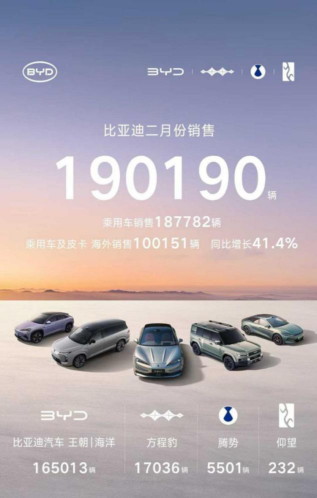 比亚迪拿的是“新能源全品类销量第一”,190190辆的成绩里有一半是出口量,国内销量同比跌了四成多。全靠海外数据撑场面。